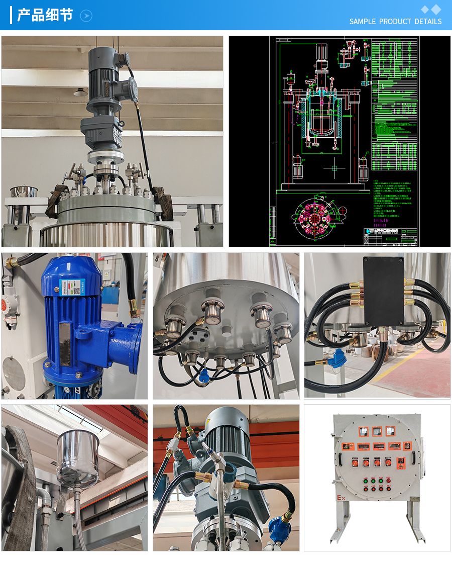 其他附件 如果用戶在釜蓋、釜體開口、內(nèi)部結(jié)構(gòu)、壓力高低、攪拌槳葉、及增加其他輔助裝置(如冷凝回流裝置、冷凝器、恒壓加料罐、接收裝置)等有特殊要求,可完全按用戶的要求加工制造
