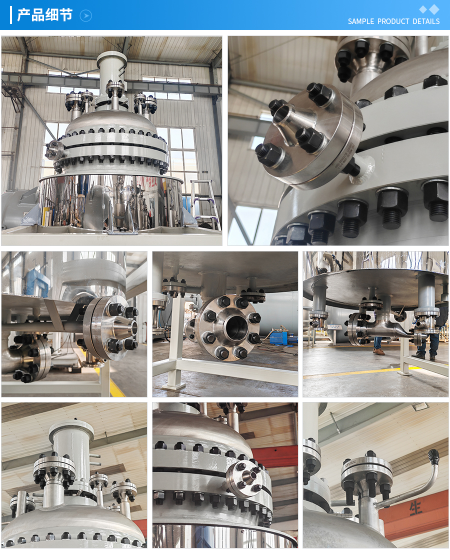 其他附件 如果用戶在釜蓋、釜體開口、內(nèi)部結(jié)構(gòu)、壓力高低、攪拌槳葉、及增加其他輔助裝置(如冷凝回流裝置、冷凝器、恒壓加料罐、接收裝置)等有特殊要求,可完全按用戶的要求加工制造