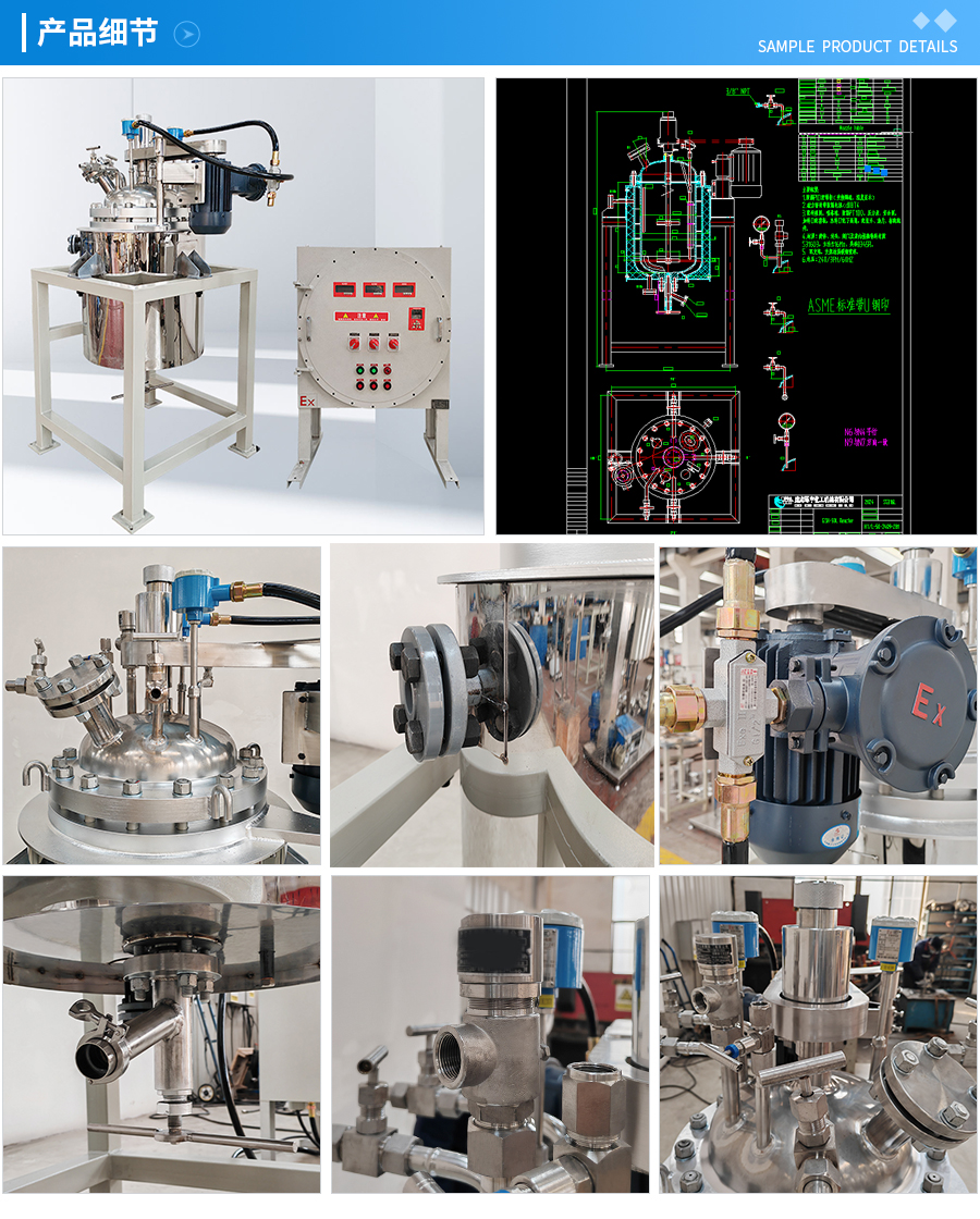 其他附件 如果用戶在釜蓋、釜體開口、內(nèi)部結(jié)構(gòu)、壓力高低、攪拌槳葉、及增加其他輔助裝置(如冷凝回流裝置、冷凝器、恒壓加料罐、接收裝置)等有特殊要求,可完全按用戶的要求加工制造