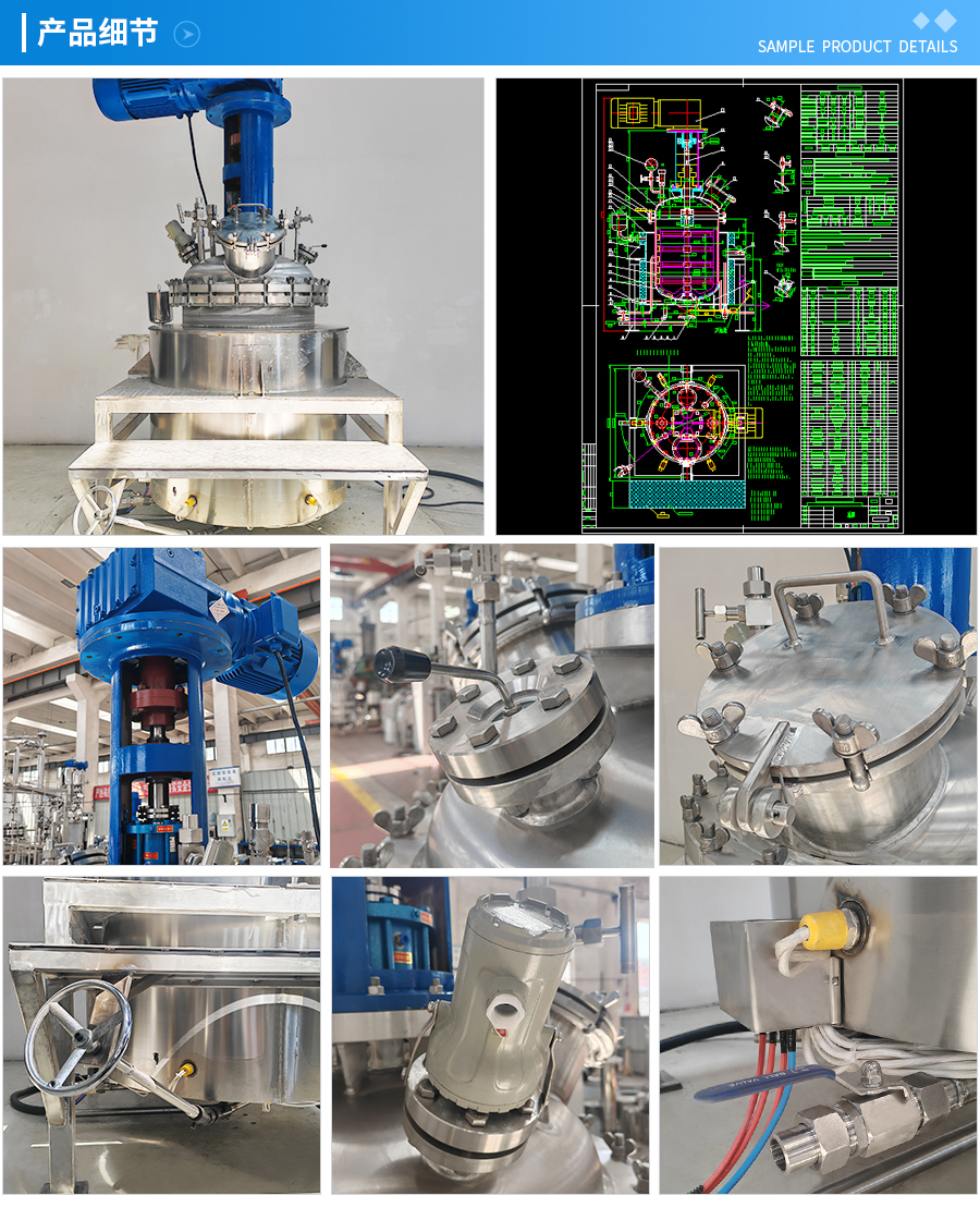 其他附件 如果用戶在釜蓋、釜體開口、內(nèi)部結(jié)構(gòu)、壓力高低、攪拌槳葉、及增加其他輔助裝置(如冷凝回流裝置、冷凝器、恒壓加料罐、接收裝置)等有特殊要求,可完全按用戶的要求加工制造